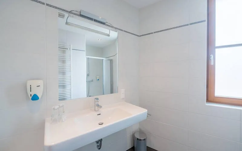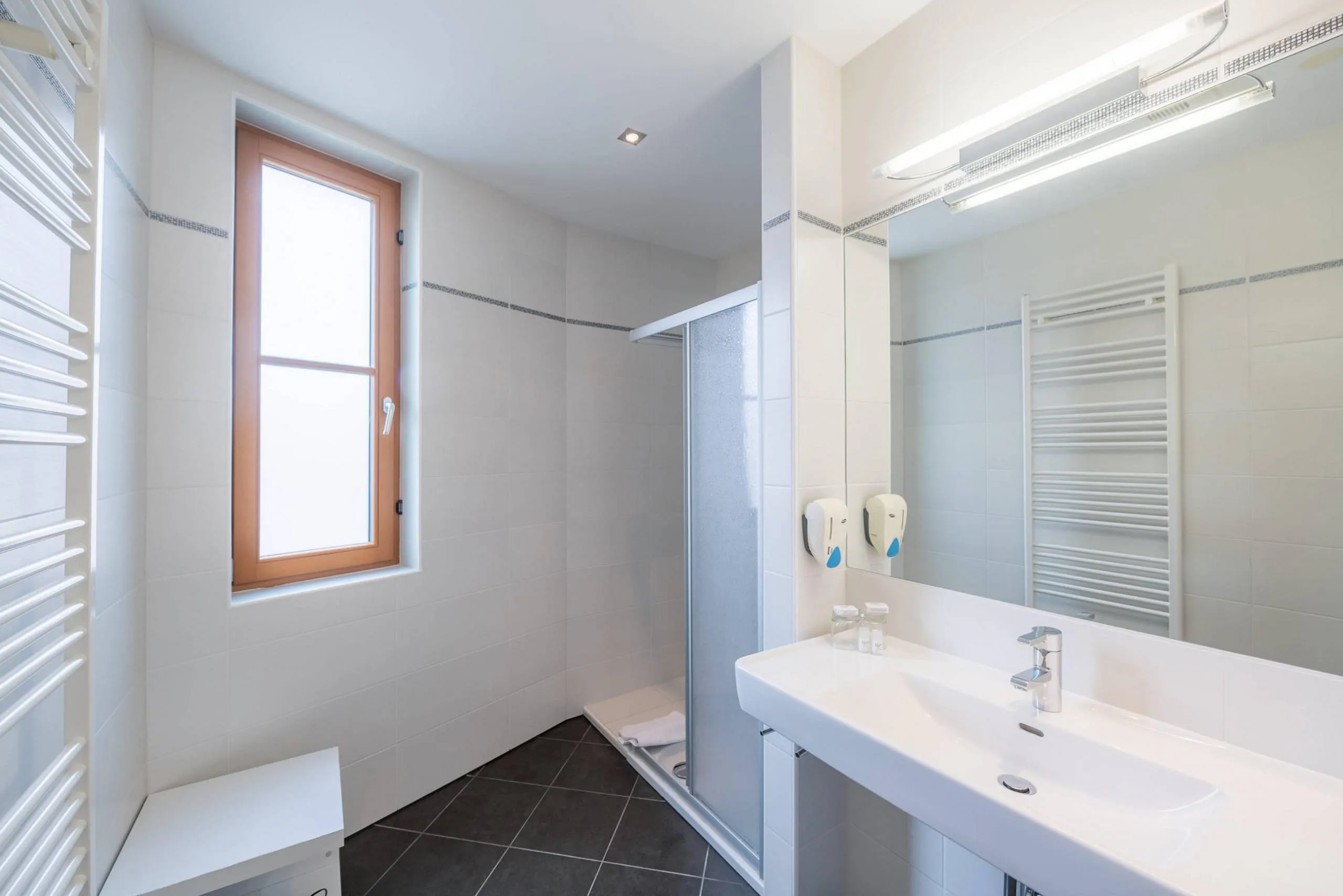 Alle Zimmer verfügen über ein Bad mit Dusche, einem separaten WC, einem Haarfön, individuell einstellbarer Heizung, Klima-Anlage, genügend Ablagefläche, einem Fernseher sowie gratis WLAN.